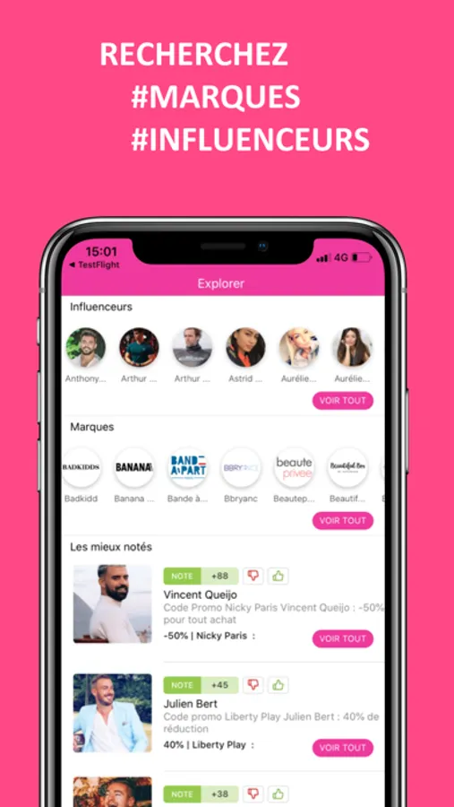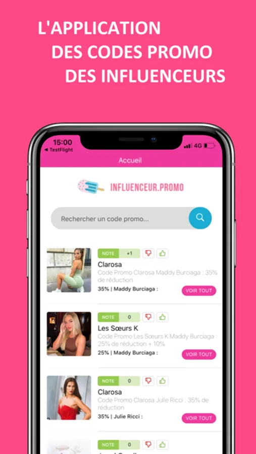 L'application pour vous permet de ne plus manquer les codes promo des influenceurs.