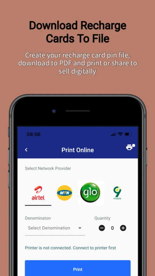 6. Print Airtime recharge cards and receipts from your Bluetooth Printer connected to your phone.