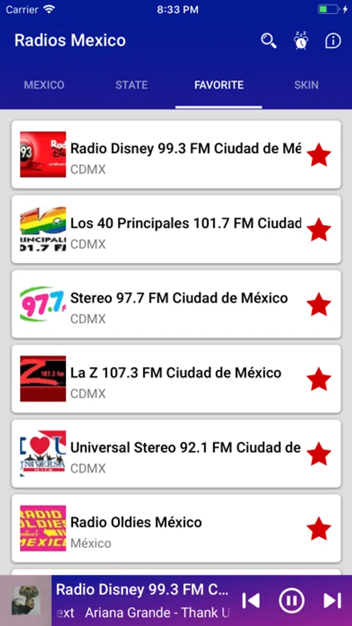 Para hacer más sencilla tu búsqueda, puedes guardar tus estaciones favoritas, control de volumen y descubrir radios por región, O estado.