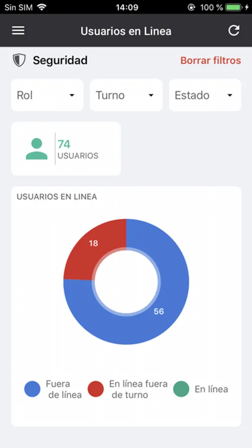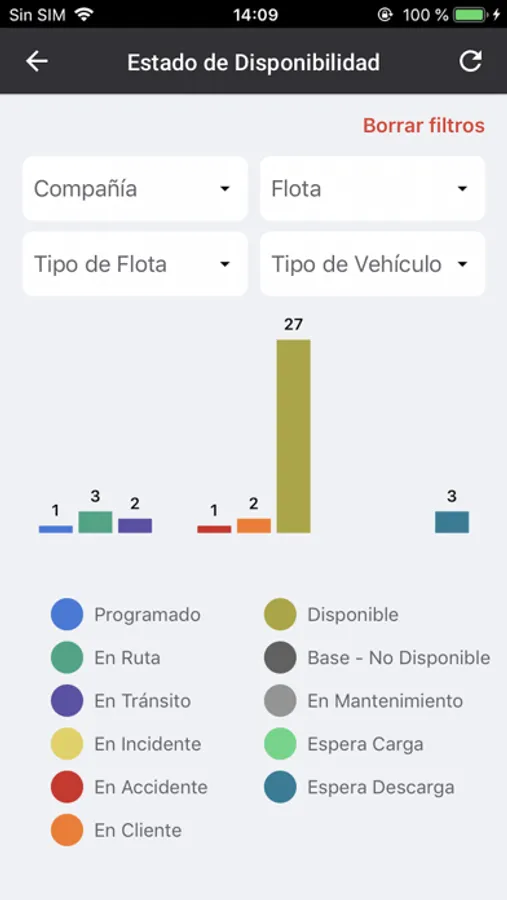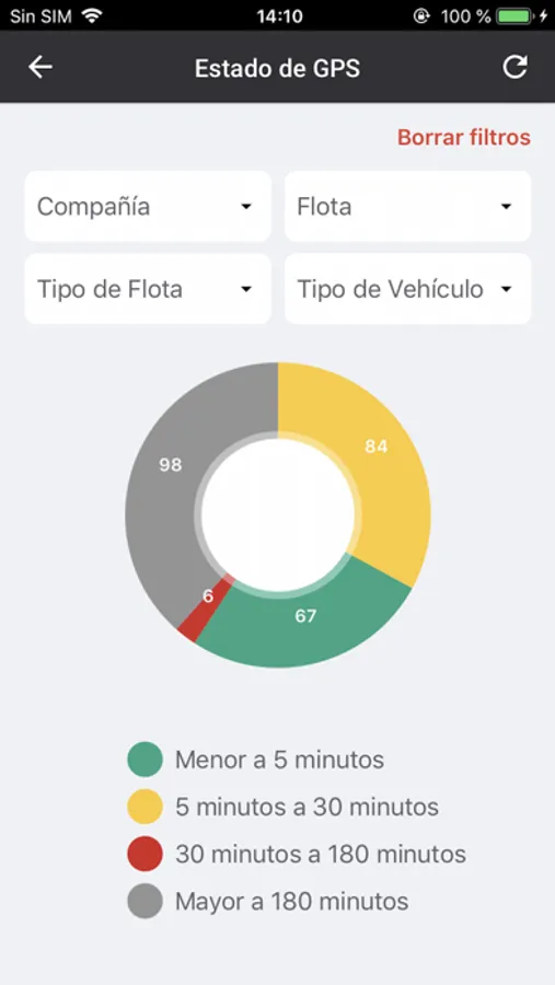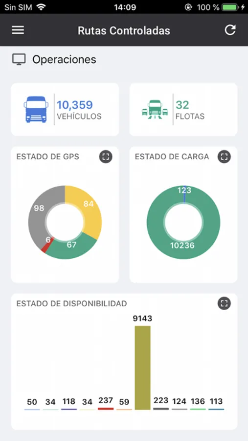 La app de rutas controladas permitirá a los usuarios verificar el estado en el que se encuentran sus vehículos con rutas asignadas. Se podrá visualizar gráfico de estado de disponibilidad, estado de carga y estado gps de los vehículos. Se podrá visualizar también el gráfico de los usuarios en línea.