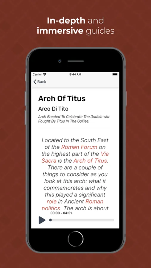 Complete: with over 60 attractions, discover wonders like the Arch of Titus and the Temple Of Saturn. Each attraction has a detailed and engaging audio guide.