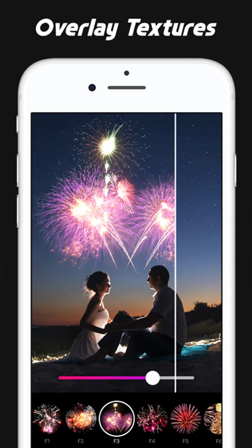 Add light leak, lens flare, confetti, glitter, firework, fire, rainbow, dust, grain, scratches, rain, show, fog and mist textures to make your photos even more special.
