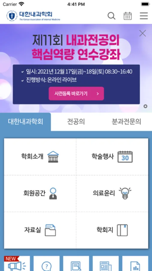 대한내과학회에서 회원들께 학회 소식과 학술행사 및 다양한 컨텐츠를 한 눈에 확인할 수 있도록 구성하였습니다.