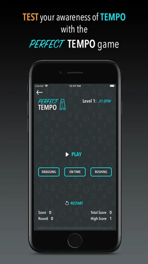 The Perfect Tempo game involves listening to four metronomic clicks followed by four more clicks that are either rushing, dragging or perfectly on time.