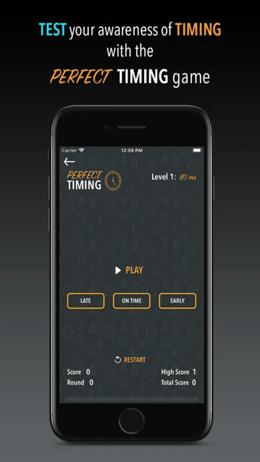 The Perfect Timing game involves listening to four metronomic clicks followed by one more click that is either ahead, behind or perfectly on time.