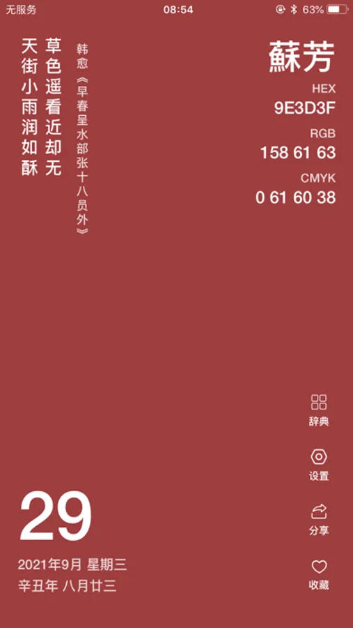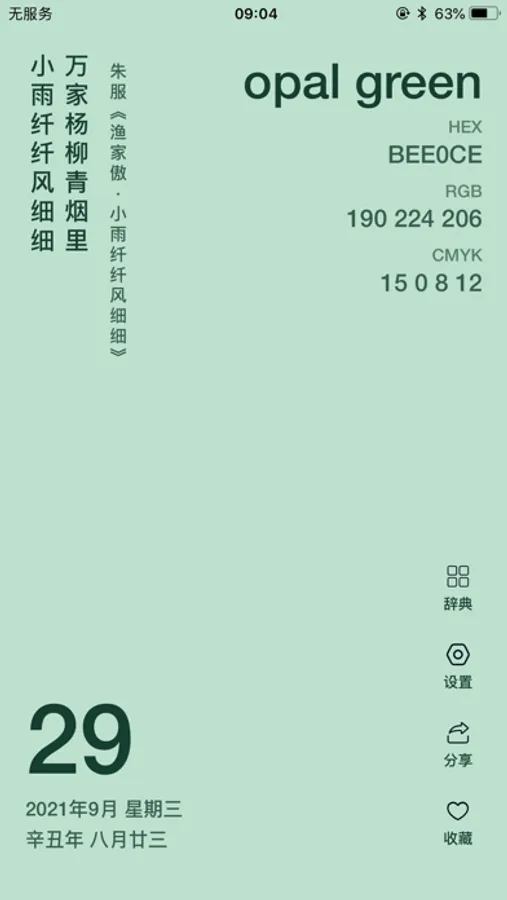 ■ 分享/保存壁纸:支持以多种形式:纯色背景、短句、日历、传统色 + 短句、传统色 + 日历、日历 + 短句、传统色 + 短句 + 日历;满足您多种场景需求,以便分享给好友或者保存为壁纸