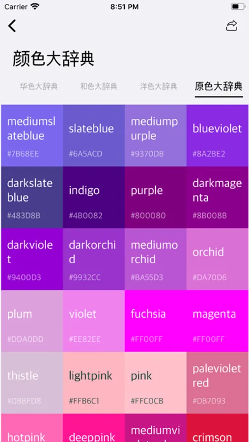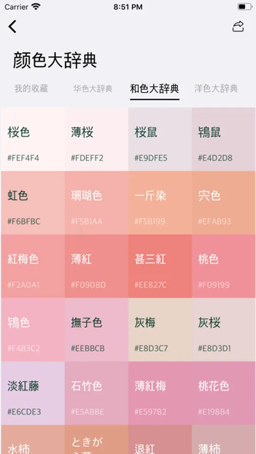 ■ 颜色辞典:上千种传统色,包括华色大辞典、和色大辞典、洋色大辞典、原色大辞典;支持自动切换颜色,同时可以根据分类自由选择和查看不同的传统色