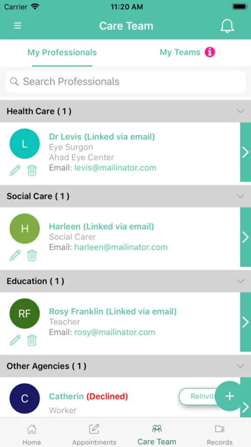 Keep track of all your care professionals in a single place