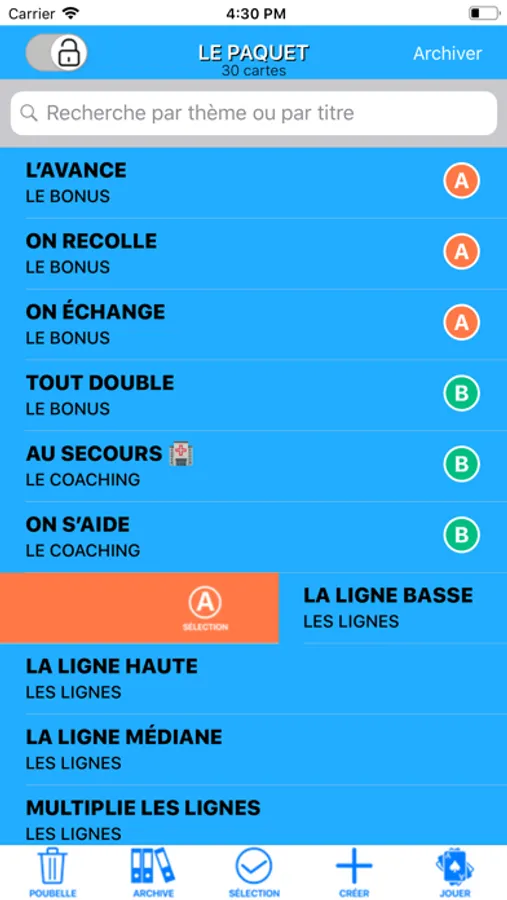 *Sélectionner une partie des cartes pour cibler un thème en particulier tout en réalisant un tirage au sort avec la sélection.