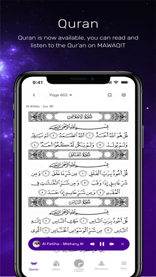• Qibla direction: Qiblah compass to quickly find the direction to Mecca.