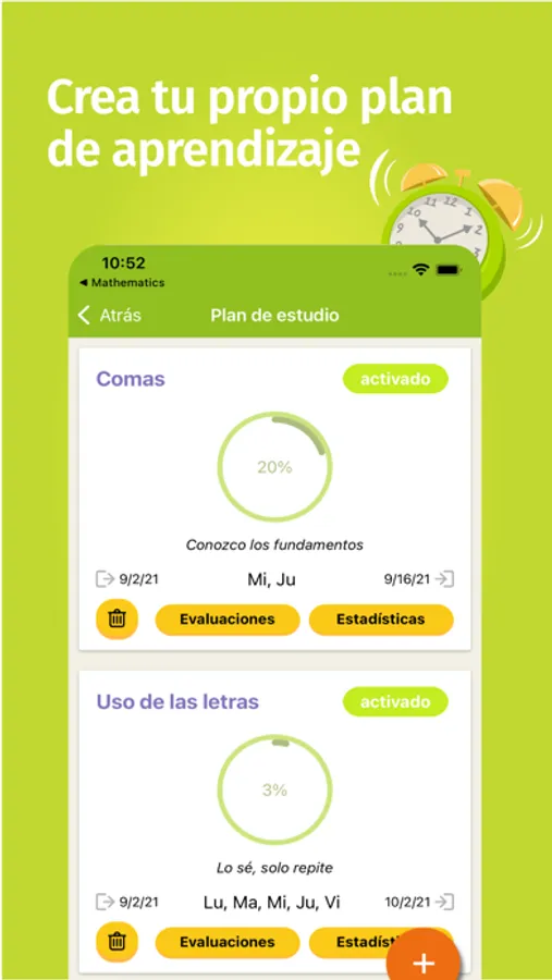 La aplicación registra tus resultados y realiza un seguimiento de las estadísticas para que puedas ver tu progreso. Además, puedes crear tu Plan de estudio o jugar en modo Campeonato.