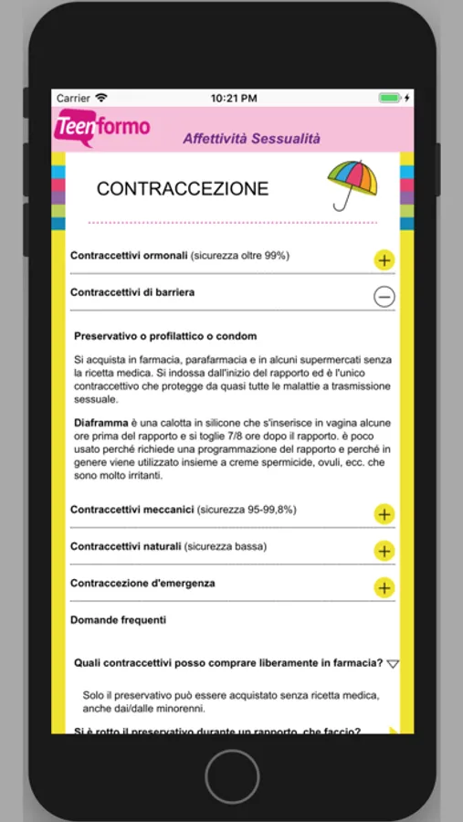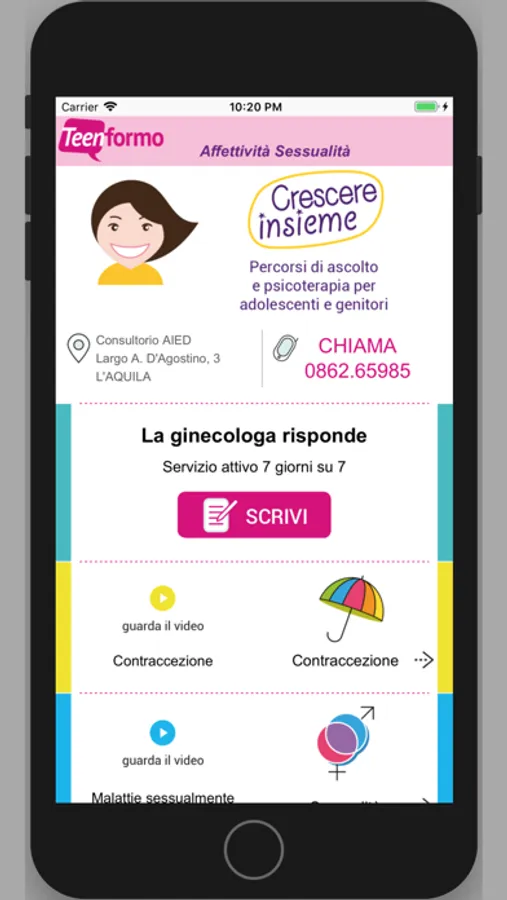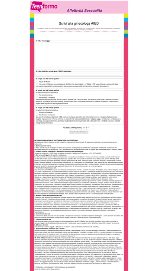 Teenformo è un'app realizzata dal Consultorio AIED L'Aquila per diffondere la cultura dell'affettività e della sessualità consapevole tra i e le teenager. All'interno dell'APP si trovano contenuti informativi su
