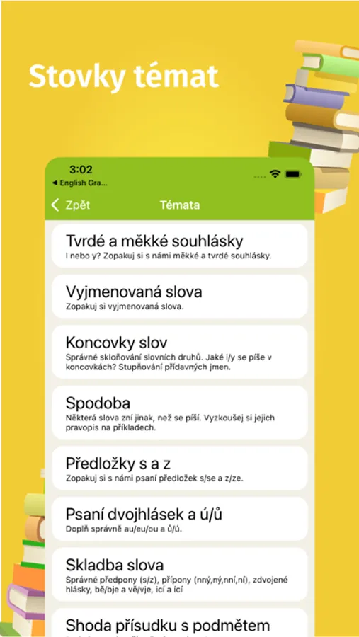 Čeká Vás maturita, didaktický test nebo přijímačky? Pomocí aplikace se rychle zorientujete v české gramatice, připravíte se do školy, k maturitě i k přijímačkám na střední a vysoké školy. A hlavně ovládnete pravopis a budete psát bez chyb. Diktáty již nebudou dělat problémy. S naší aplikací nemusí být čeština vůbec složitá.