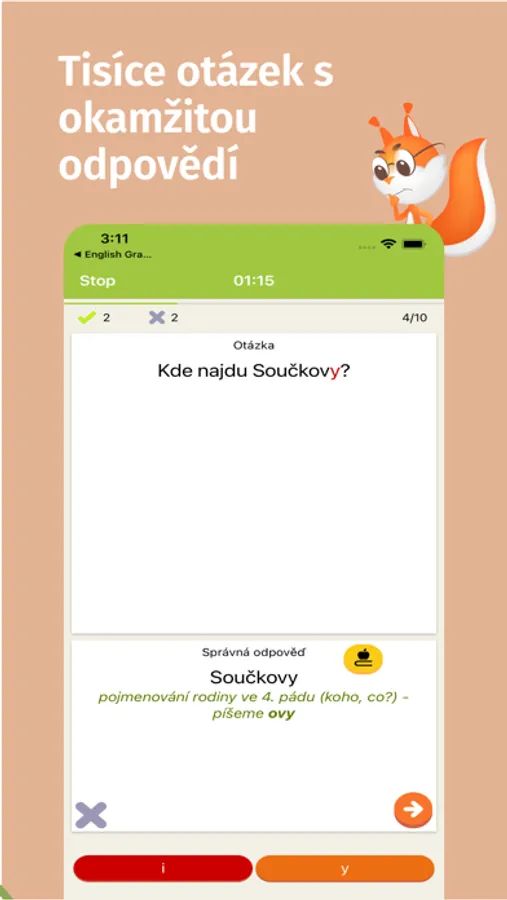 Aplikace také obsahuje učební plán a šampionát pro mistry českého jazyka.