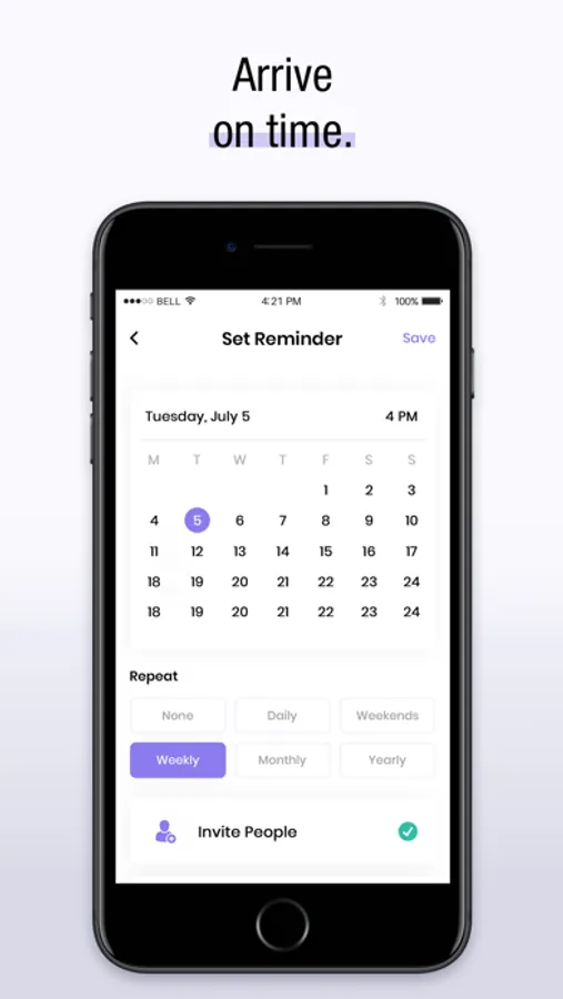 • Never Forget - Set reminders to keep track of daily tasks or weekly goals.
