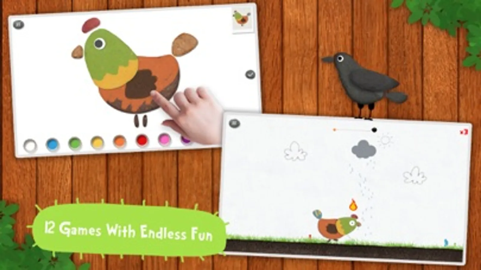 4. 12 games & activities: match insects, feed birds, peck insects, smack rabbits, beach run, gesture memory, music rhythm game,stone men choir etc ...;