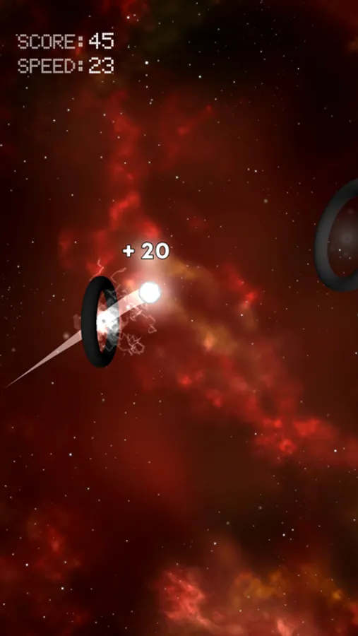 Take the challenge and travel through space as speed increases and collect the nucleus inside the rings! Make it as far as you can!