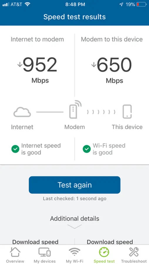 Speed Test: Validate not only the speed of your broadband connection, but also directly to your device. If facing a slow-down, you can easily determine the cause.