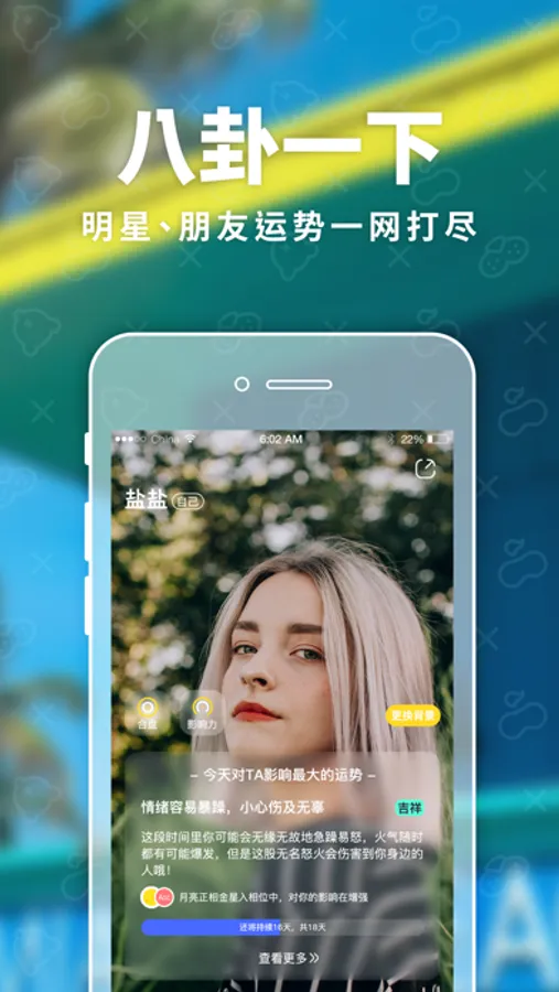- 八卦一下:你想知道身边的人以及明星的运势情况吗?超多大牌明星档案,只需添加关注即可轻松掌握他们的每日状态;