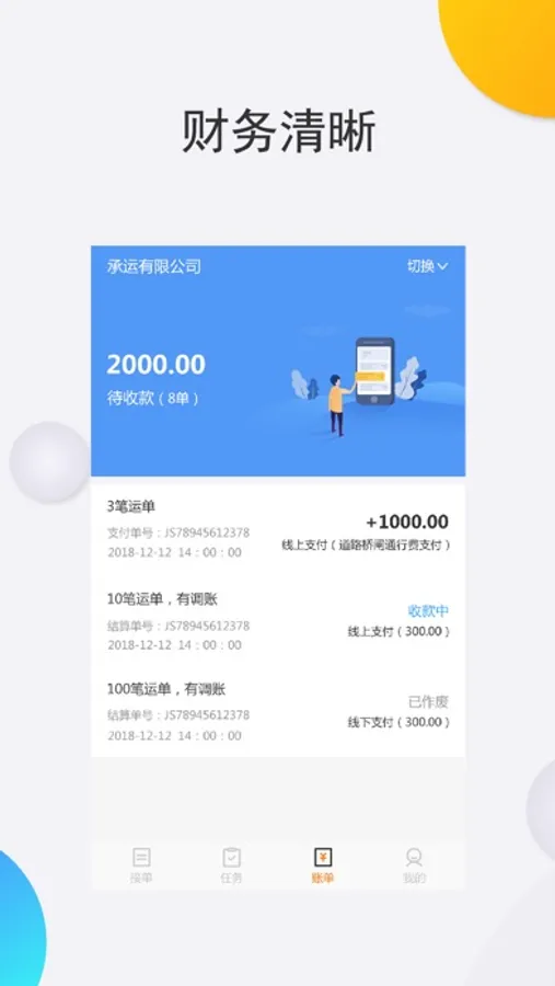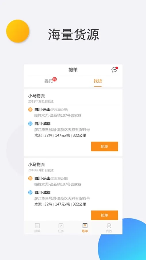 2、司机端功能强大:给指定物流商下单、司机抢单,实时预估发货费用,提供货物跟踪、回款状态、回单状态跟踪功能。