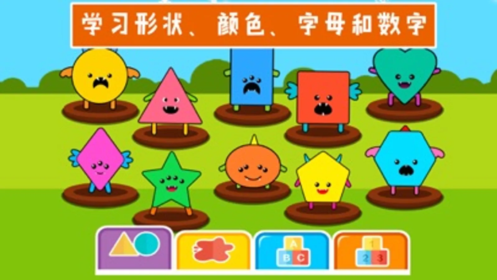 3.学习;这里形状,颜色,字母和数字4种供孩子们学习