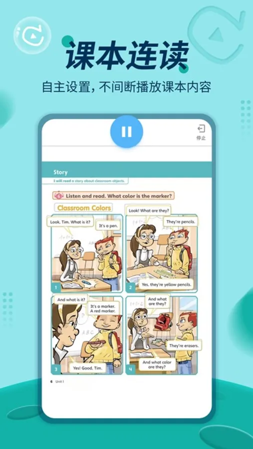 电子点读书支持连读,自主设置连读起始点,不间断播放课本内容,轻轻松松磨耳朵