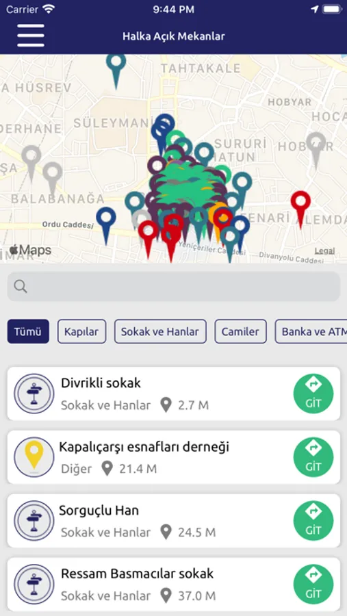 "Halka açık mekanlar" başlığı altında çıkışlar, sokak ve hanlar, atm ve diğer sorulan yerleri, ziyaretçi ve kullanıcıların parmaklarının ucuna kadar getirdik.
