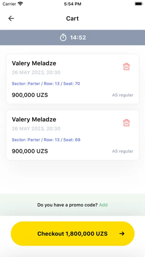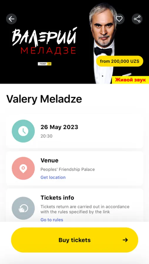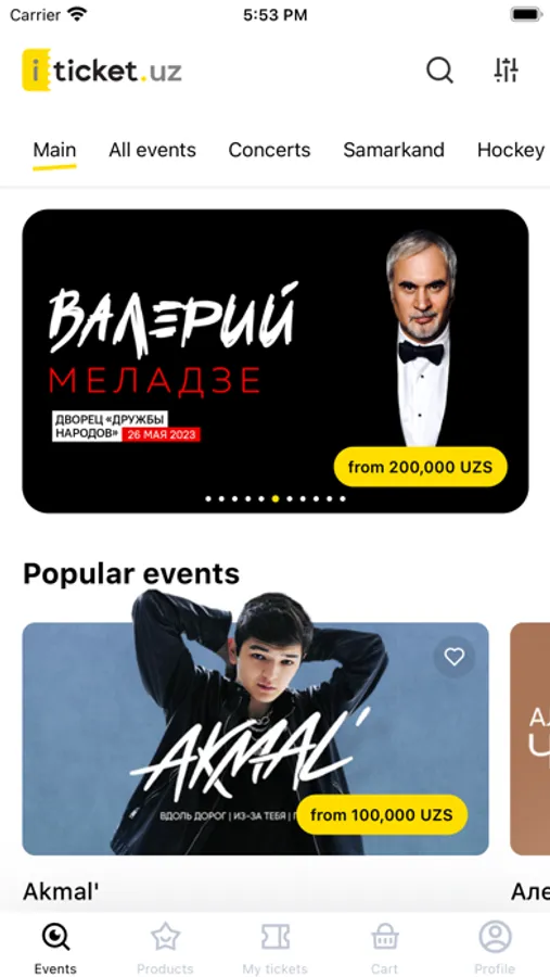 All tickets are sold at official prices. Tickets ordered in the application can be paid online and received by e-mail, redeem at any of the iTicket.UZ Ticket Sales Points, or use the delivery service. Payment is accepted by UZCARD.