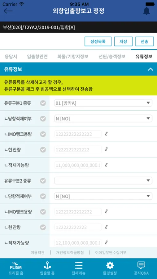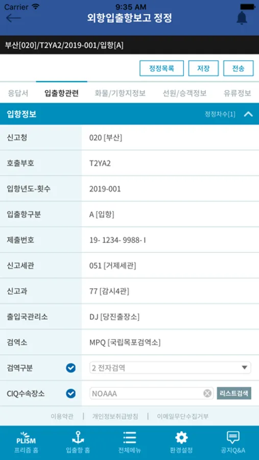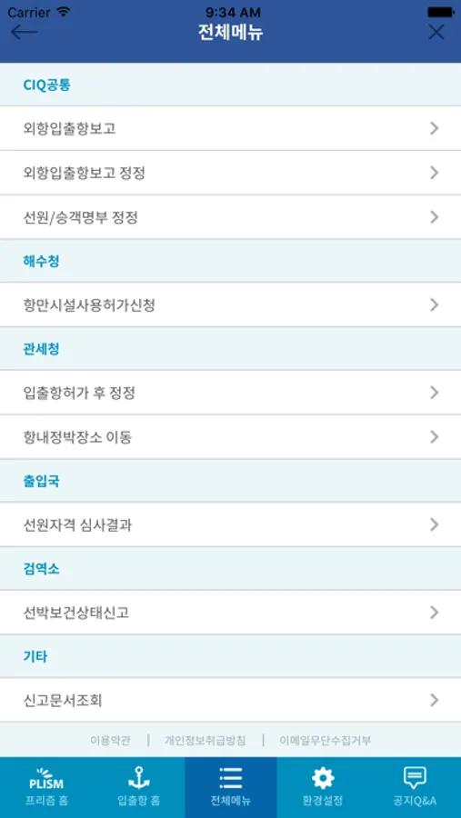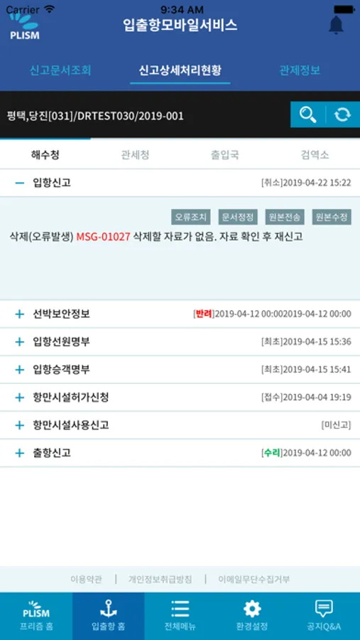 - 입출항신고, 선원/승객명부 실시간 신고 및 정정