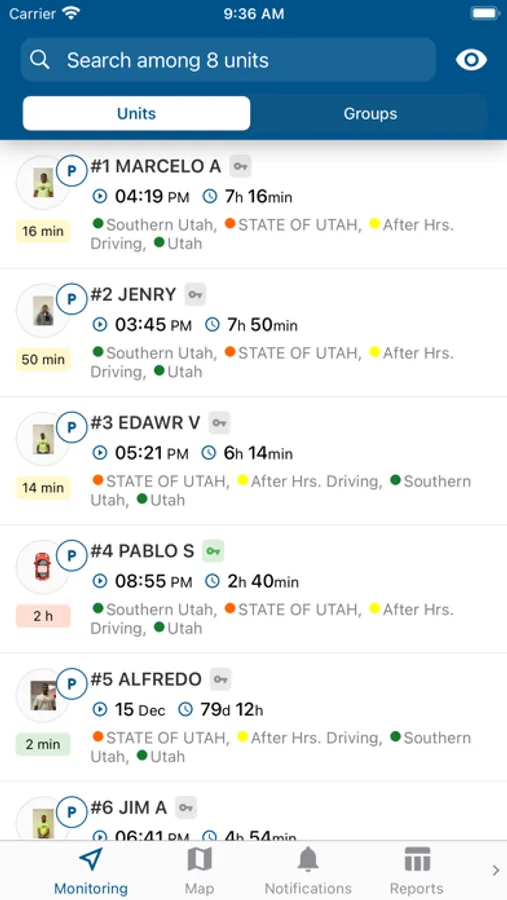 Unit list management. Get all the necessary information on movement, ignition state, data, and unit location in real time.