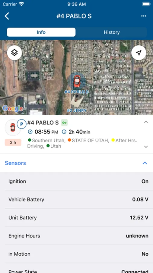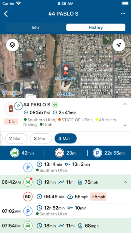 - Map mode. Access units, geofences, Bread Crum, event markers. with the option to detect your own location.