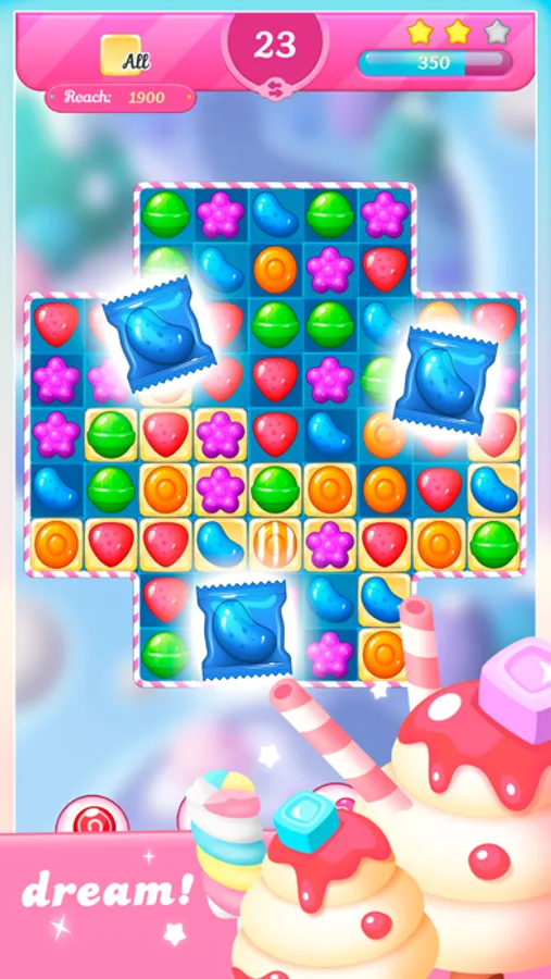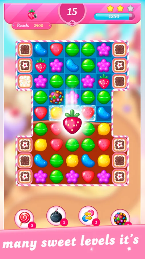 - Intricate match three in a row - candy, lollipops, cake pops, marshmallows and more sweets;