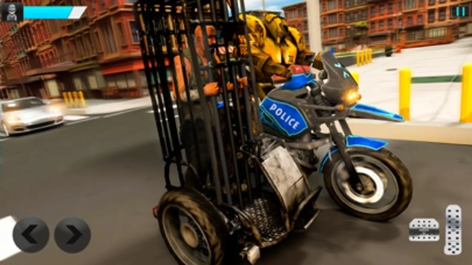 In US Police Car Robot Transformation Game, You have a number of robot police tasks like arresting criminals & shoot out with gangsters of Miami City. Become a real robot Sidecar police man in a NYPD police robot games 3d. Whether you choose between futuristic robot side car motorcycle or NYC cop car complete your grand theft criminal chase mission.