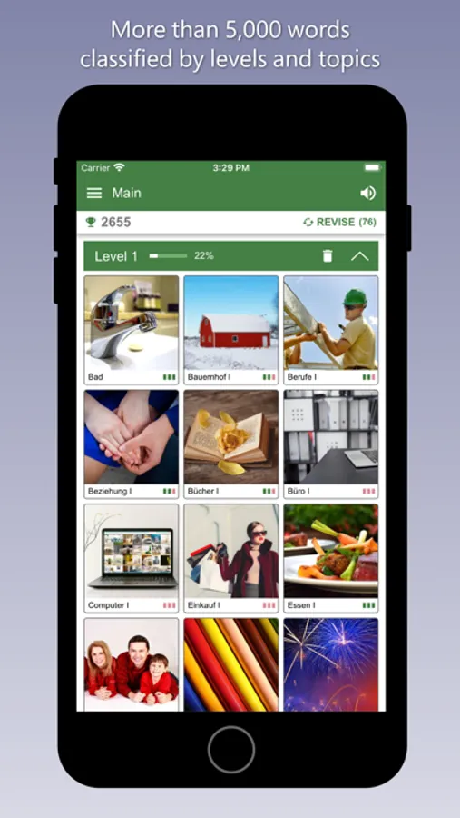 Free app to learn German by improving your VOCABULARY in an easy and fast way, with more than 5,000 words classified by levels and topics.