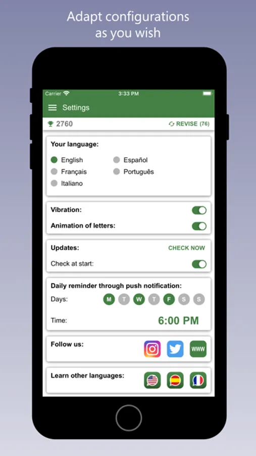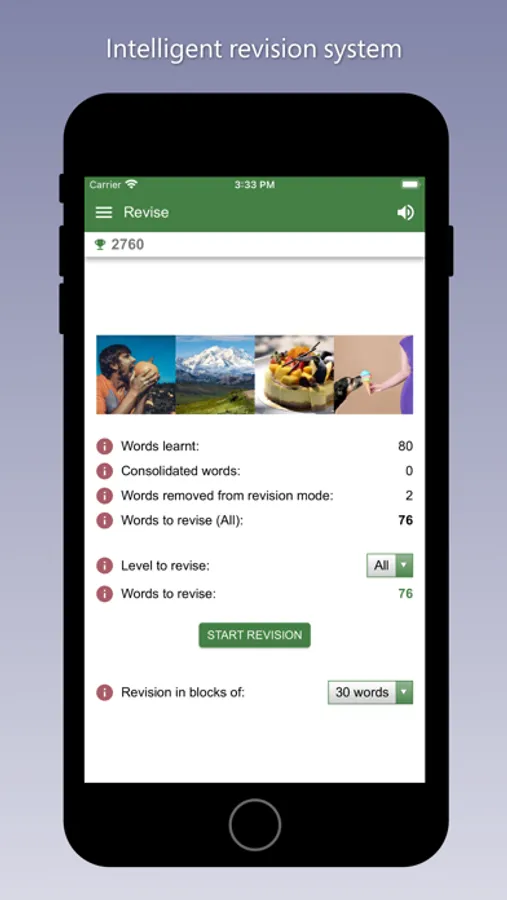 - Intelligent revision system which will make you revise the word according to your hits and mistakes. The more often you get a word wrong, the more often this word will be revised until you remember it.