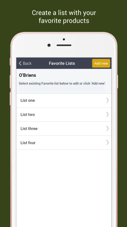 * Create shopping lists with your favorite products