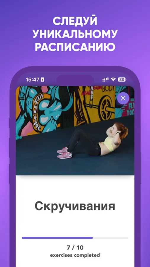 Как только вы установите приложение, вам будет доступна первая тренировка. План упражнений составлен таким образом, что на каждый день у вас будет появляться новая программа. После того, как вы выполните все задания из первого дня, на следующий день вам будет открыт доступ к новым заданиям.