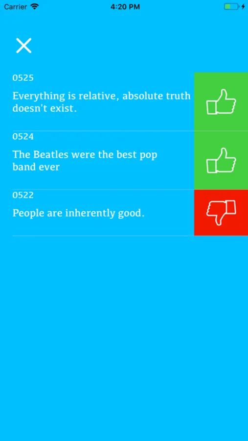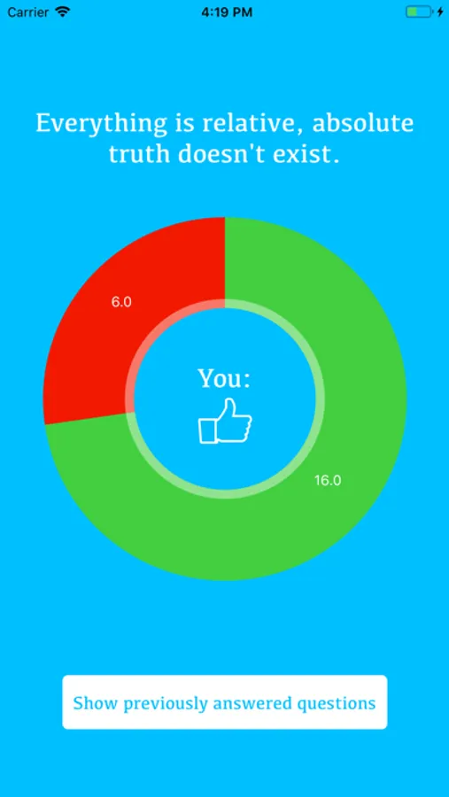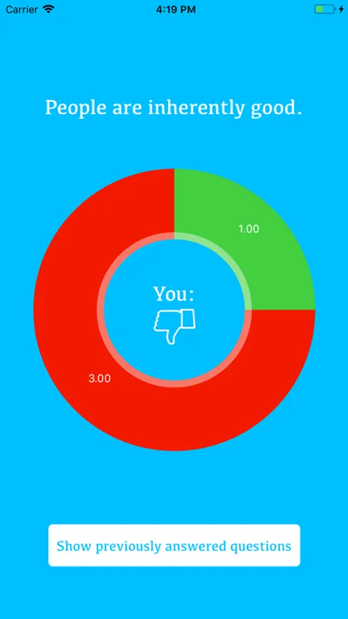 Hypothesis throws a fresh question at you every day and asks you to (anonymously) let your opinion be heard. Are you in line with the masses or a free thinker that's not afraid to go against the grain. Look back at previous answers and see how your opinions change over time. It's quick, easy, fun and it might even make you think...