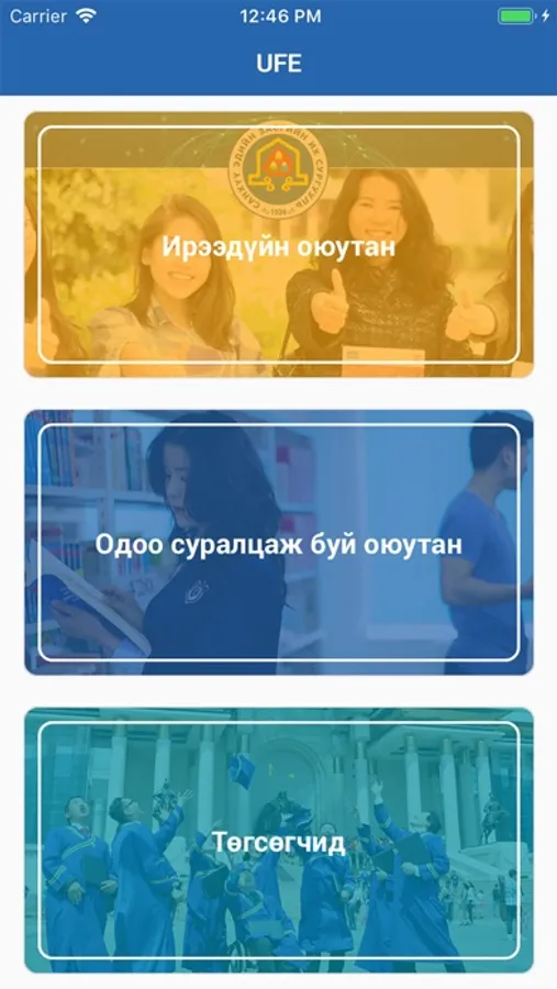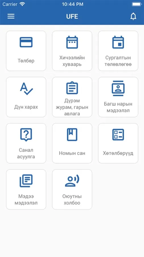 This mobile application is dedicated for usage of administrators, professors and students. The application is linked to the official website of UFE (www.ufe.edu.mn) and additional online academic systems.