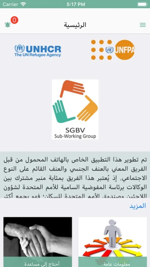 This mobile application has been developed by the Sexual and gender based violence working group (SGBV SWG) in Jordan. The group is an inter-agency platform chaired by UNHCR and UNFPA bringing together more than 30 local and international NGO’s who provide services to survivors of gender based violence in the context of the Syrian crisis. That includes women, girls, men and boys subjected to sexual violence as well as women and girls subjected to physical and emotional violence. Organizations also provide services to prevent violence such as women and girls empowerment activities. This mobile application will provide you with information on services to seek help or to join group activities to improve your skills, release stress and improving your social network. It will also allow you to share risk points if you identify areas generally unsafe for women and girls.