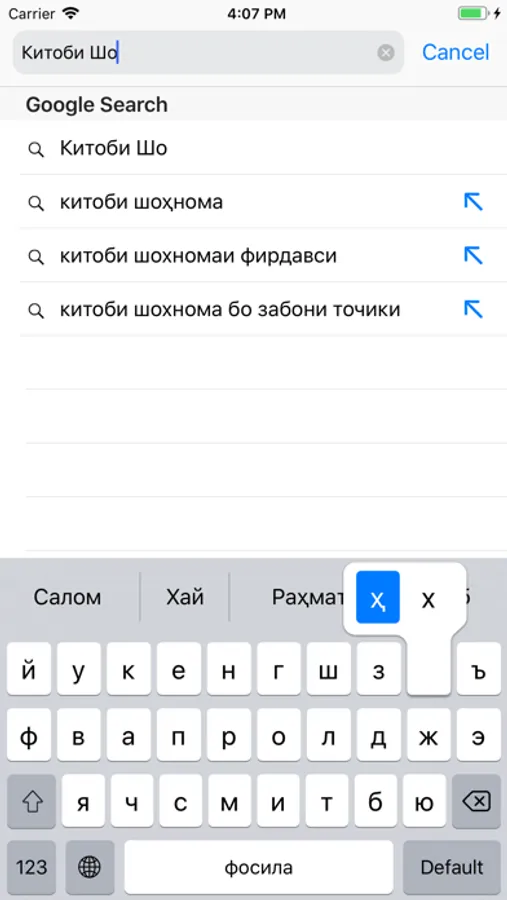 Tajik keyboard integrated with iOS extension and fully free to use.