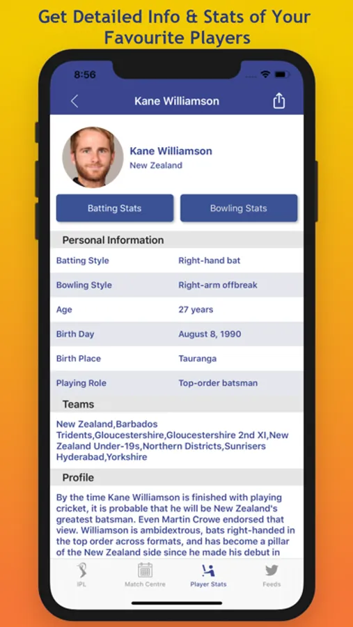 Cricket Fever - Live Cricket App has stats of all cricket players and live Twitter Feed to show all recent cricket feeds.
