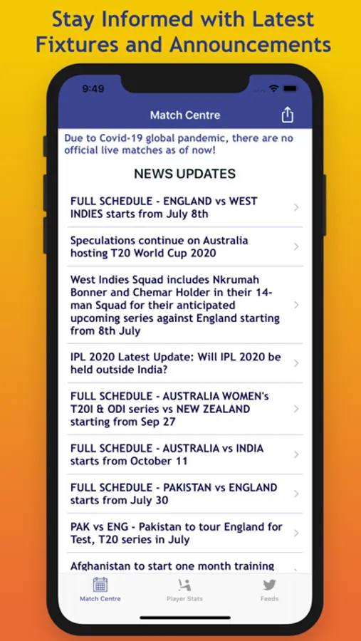 With Cricket Fever - Live Cricket App you get Live cricket news and updates (coming soon)