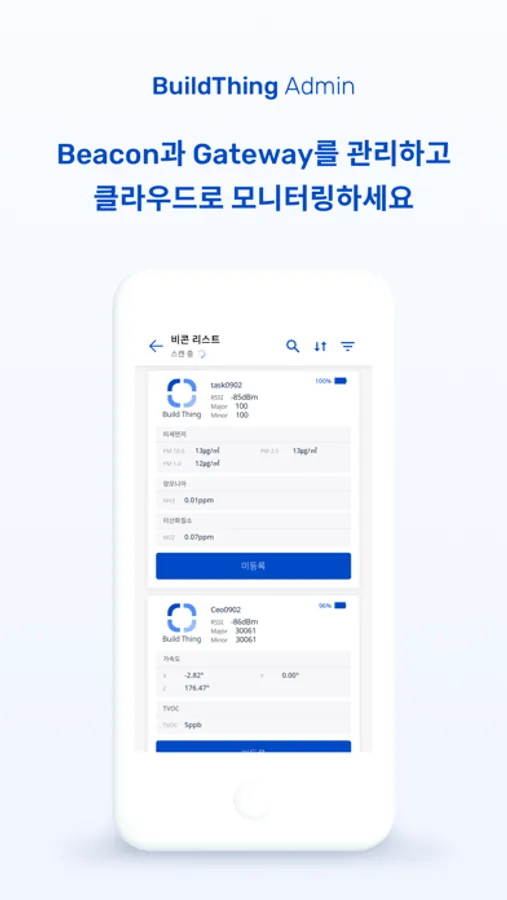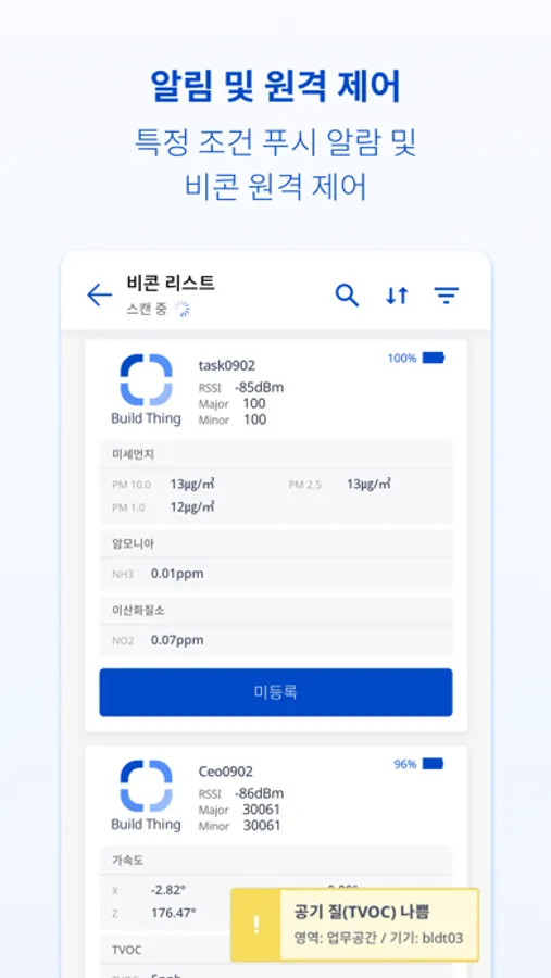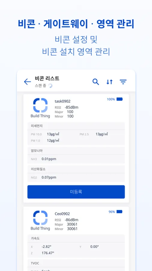 - 주변 BuildThing Beacon을 스캔할 수 있습니다.
