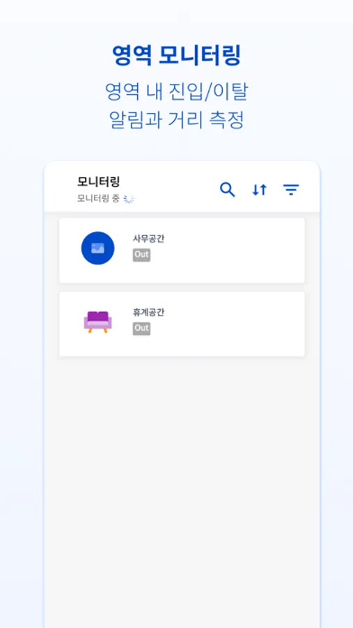 - BuildThing Beacon이 등록된 영역 내 진입/이탈 여부를 알 수 있습니다.
