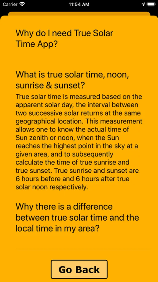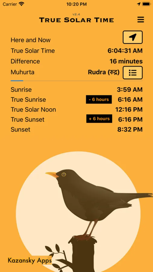 True Solar Time will allow you to see sunrise, sunset & midday times according to your actual position in respect to the Sun!