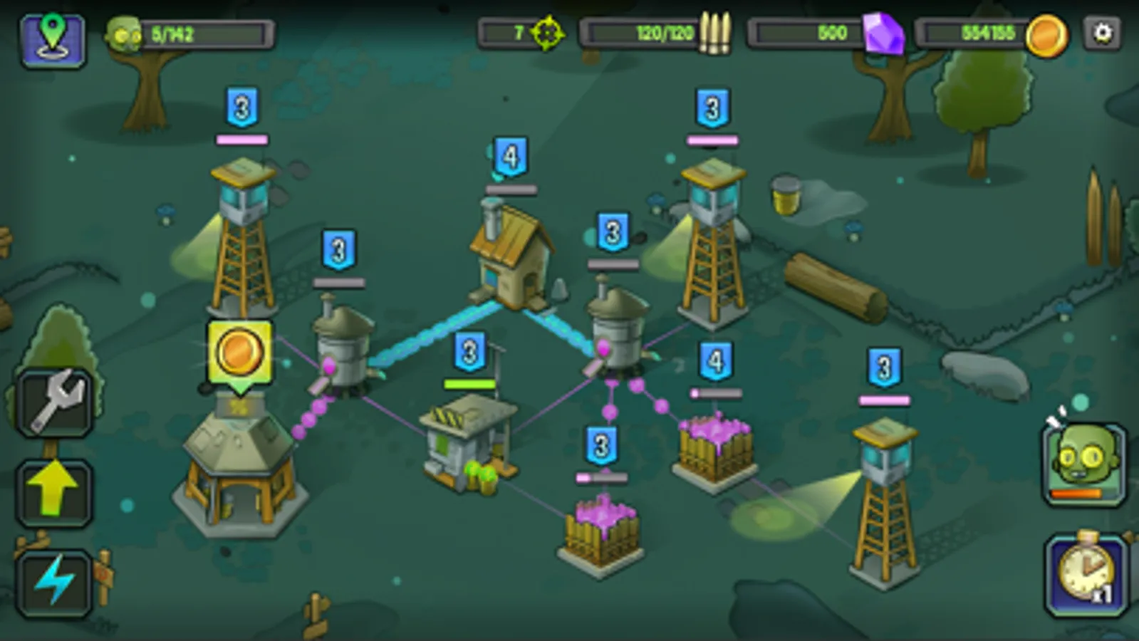 In the game you take control of the island and its settlements. Clean each village of all zombies so your coin production can grow.