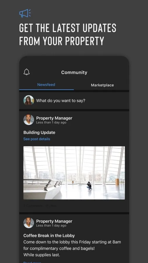 • Community Newsfeed, Groups, Events, Polls, & Building Updates