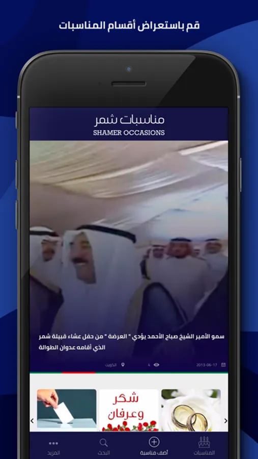 ونشر اخبار مناسباتكم من خلال تطبيق مناسبات شمر