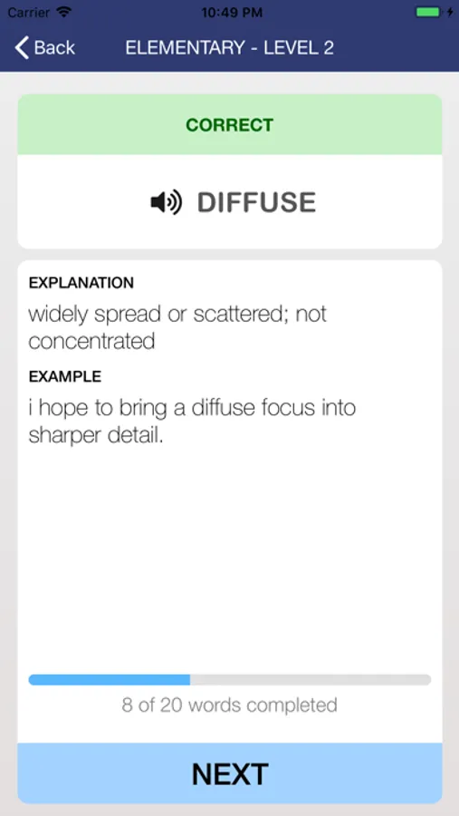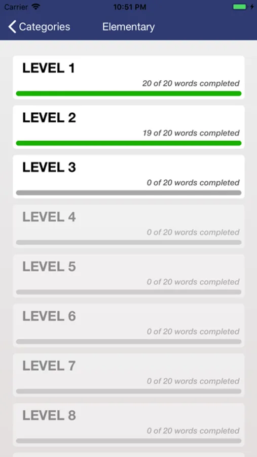 Each level you beat unlocks a harder one: more words and more advanced vocabulary.